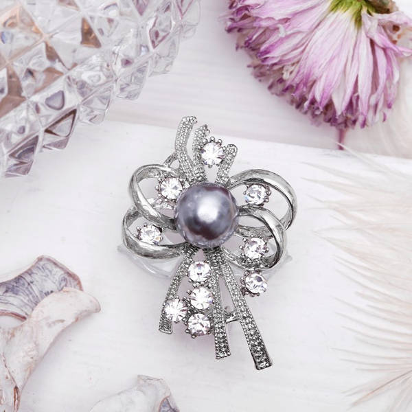 Брошь "Жемчужная классика" цветок, цвет бело-серый, цвет серебристый (пластик, стразы, бижутерный сплав)