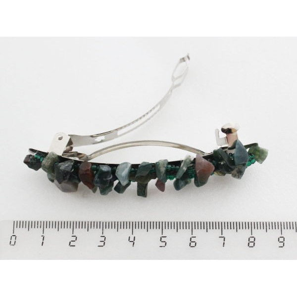 Заколка 77мм с яшмой зеленой, галтовка+бисер