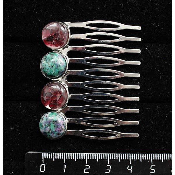 Заколка-шпилька из граната (кабошон-мозаика) и цоизита, 4 камня круг 12мм