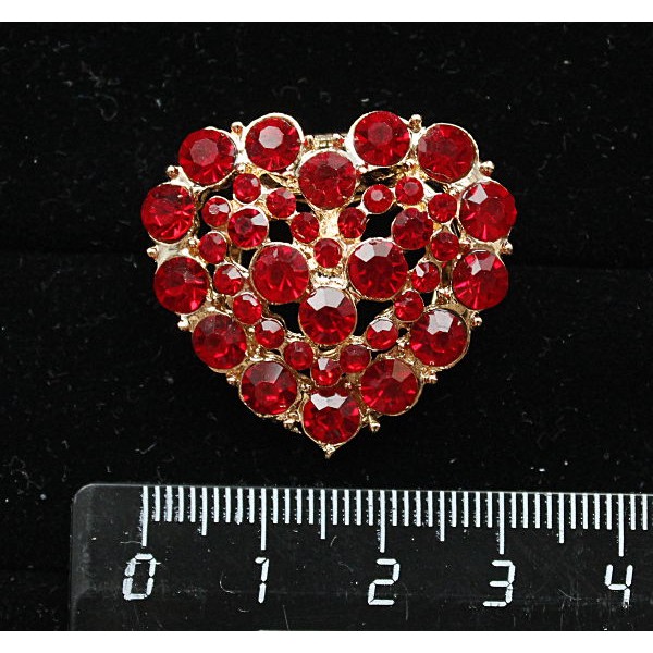 Зажим для платка "сердце", стразы, цвет красный