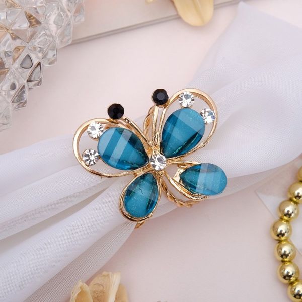 Кольцо для платка "Бабочка", цвет морской, цвет золотистый