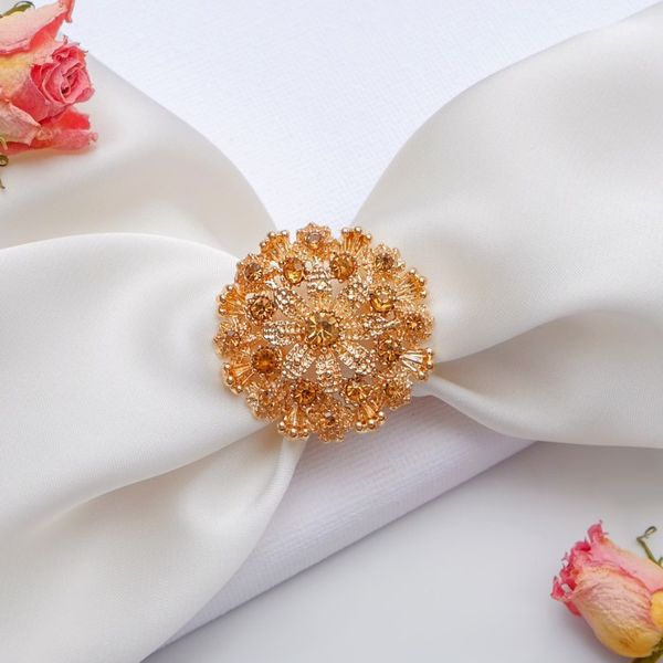 Кольцо для платка "лилия", стразы, цвет коричневый+золотистый