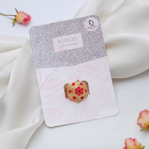 Кольцо для платка "Классика" многоугольник, цвет красный, цвет золотистый