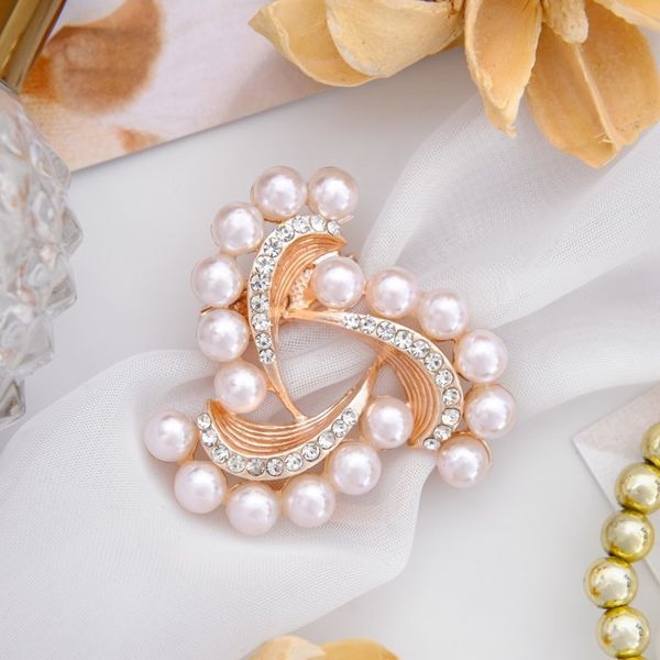 Зажим для платка "роза", стразы, цвет белый+золотистый
