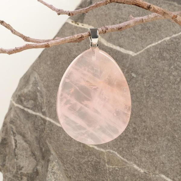 Кулон кварц розовый капля крупная гранёная