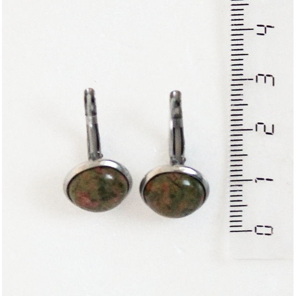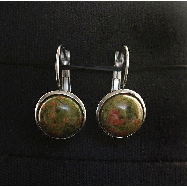 Серьги из унакита, круг 12мм, нерж. сталь