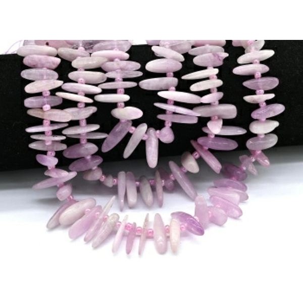 Бусины из кунцита галтовка "рожки", 38см, 72 бусины