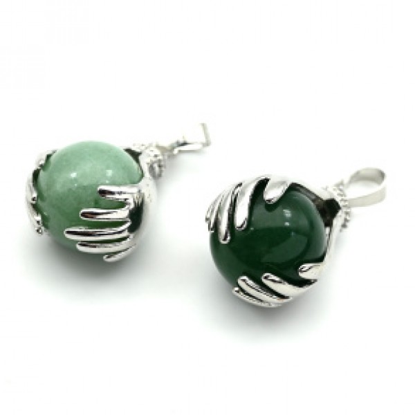 • Кулон Шар в ладонях 18*23мм с нефритом прессованным