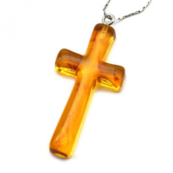 Крестик на шею из янтаря 20*38мм цвет медовый (иск.)