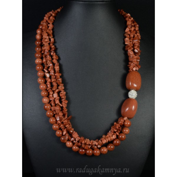 Колье 4 нити из авантюрина 2 овала с шамбалой, 55см