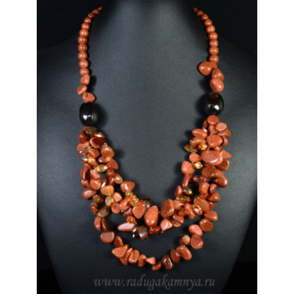 bu02-00193, bu02, bu02-, 02-, 02-00193, бусы_3_нити_из_авантюрин_с_цирконом, авантюрин, бусы_авантюрин