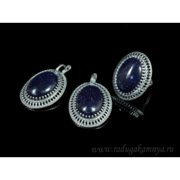 Кольцо и серьги с авантюрином синим (имитация)