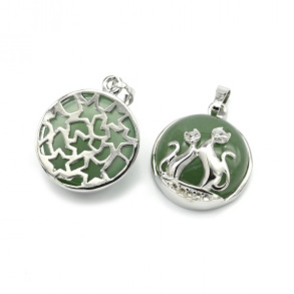 Кулон коты 22*22мм в металле с авантюрином зеленым