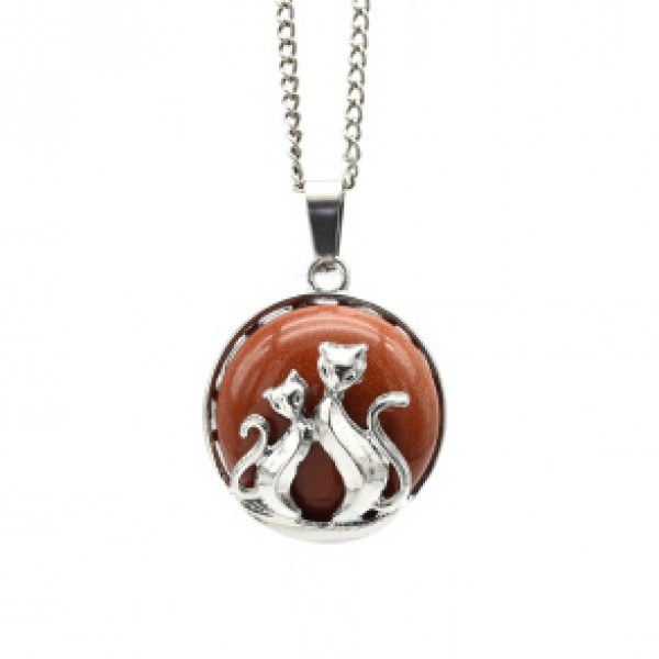 Кулон коты 22*22мм в металле с авантюрином (иск.)