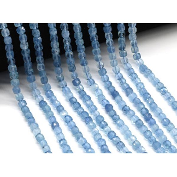 Бусины из аквамарина кубик гр.5мм, 39см, 80 бусин