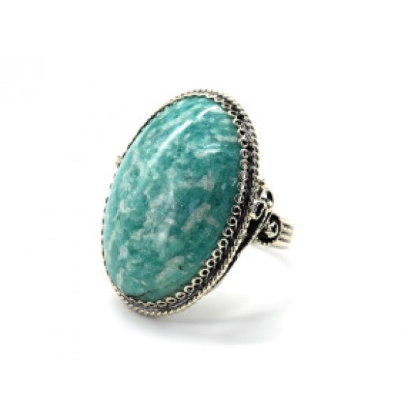 Большое кольцо с амазонитом из ювелирного сплава..