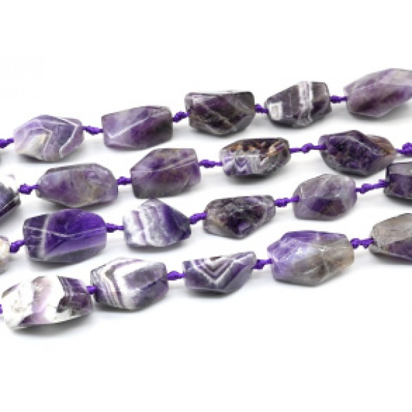 Бусины из аметиста галтовка с гранями 20*30мм, 22см, сет 6 бусин