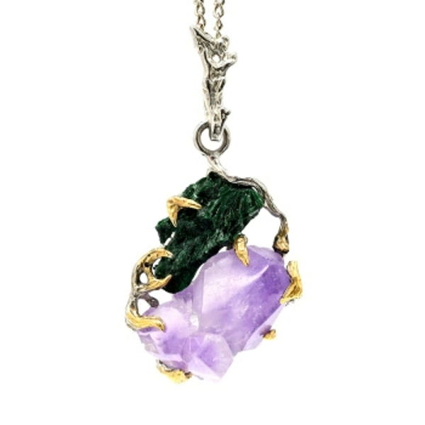 • Кулон аметист с плисовым малахитом 24*36мм.