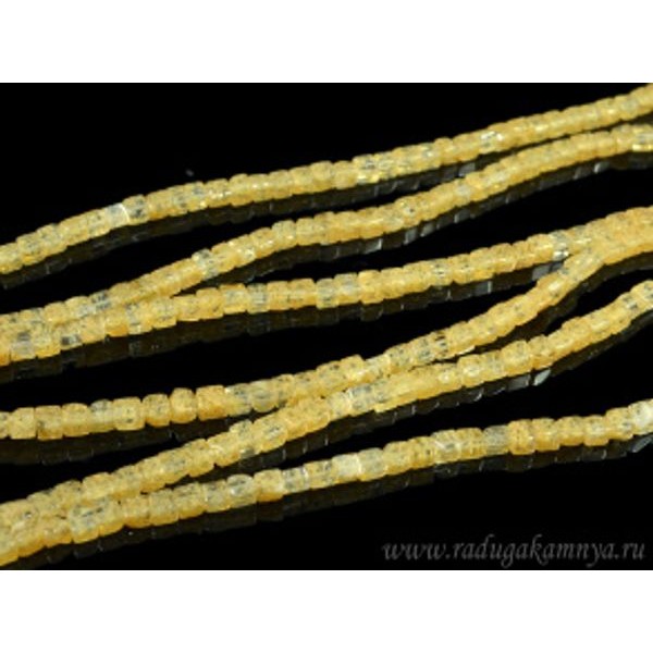 Бусины из цитрина кубик гр.5мм, 38см, 73 бусины