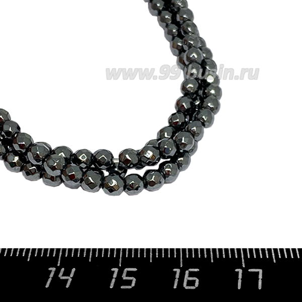 Натуральный камень ГЕМАТИТ граненые цвет натуральный 4 мм, 40 см/нить