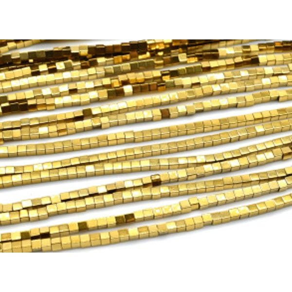 Бусины из гематита кубик 3мм цвет золотистый, 39см, 128 бусин