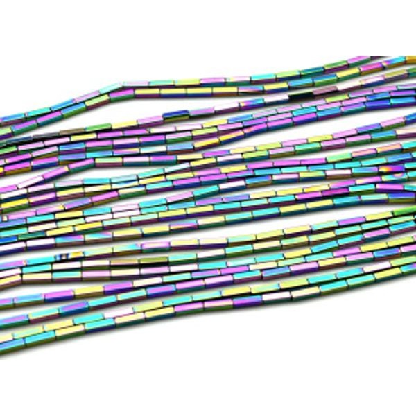 Бусины из гематита брусок 2*8мм цвет хамелеон, 38см, 49 бусин
