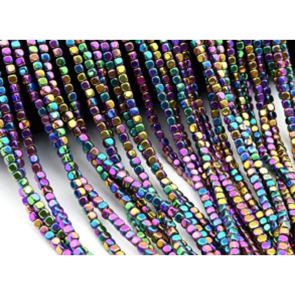Бусины из гематита кубик 4мм цв.радужный, 40см, 100 бусин