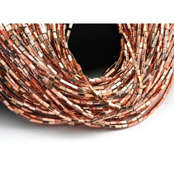 • Бусины из гематита брусок 2*4мм цв.розовое золото, 40см, 97 бусин