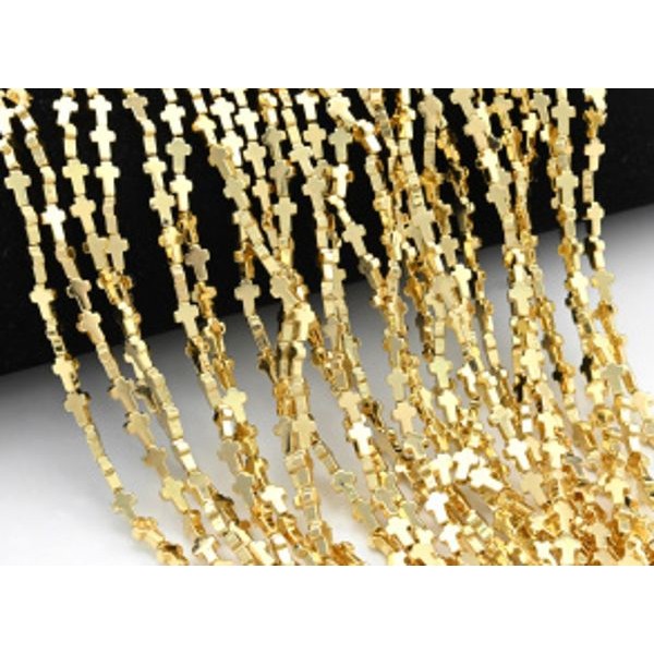 Бусины из гематита крестик 4*6мм цвет розовое золото, 37см, 59 бусин