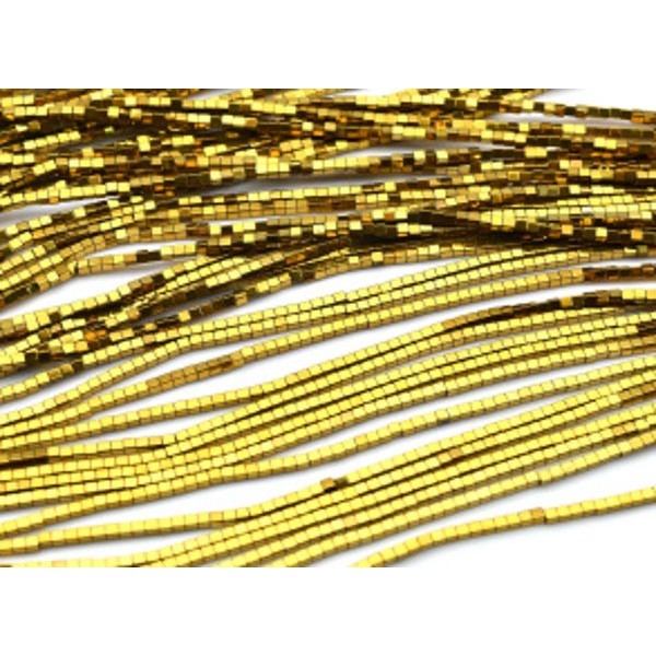 Бусины из гематита кубик 2мм цвет золотой, 39см, 175 бусин