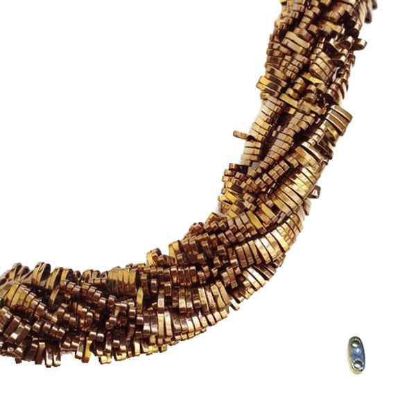 Натуральный камень ГЕМАТИТ с покрытием под ПИРИТ маленький цилиндрик 2*2 мм, цвет темное античное золото, 40 см/нить