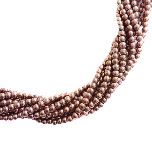 Натуральный камень ГЕМАТИТ с покрытием под ПИРИТ маленький цилиндрик 2*2 мм, цвет темное античное золото, 40 см/нить