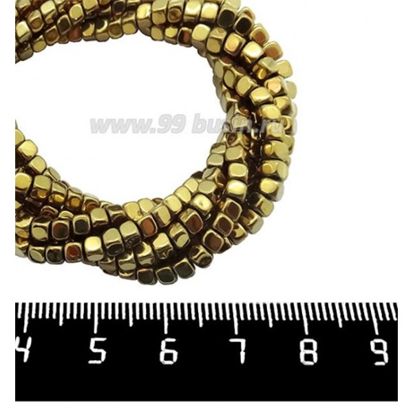 Натуральный камень ГЕМАТИТ кубик 3*3 мм, цвет античное золото, 40 см/нить