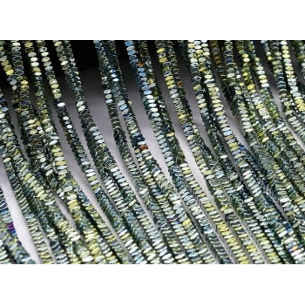 Натуральный камень ГЕМАТИТ с покрытием под ПИРИТ спейсер 4*2 мм, цвет голубовато-зеленый мультиколор, 40 см/нить