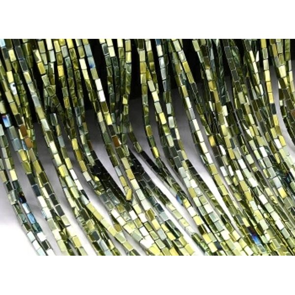 Бусины из гематита брусок 1*3мм цвет зеленый, 40см, 130 бусин