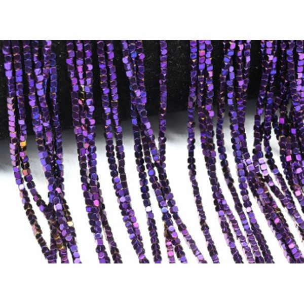 Бусины из гематита кубик 1,5мм цвет фиолетовый, 40см, 240 бусин