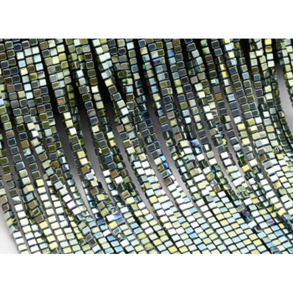 Бусины из гематита кубик 2мм цвет зеленый, 40см, 175 бусин