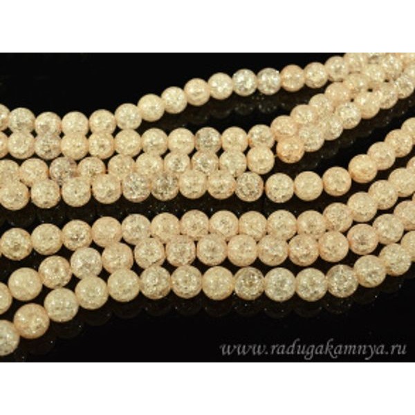 Бусины из кварца снежного тонированного шарик 10мм персиковый, 38см, 40 бусин.