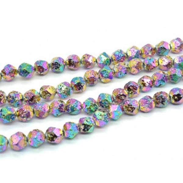 Бусины из лавы шарик с гранями 10мм цвет хамелеон светлый, 38,5см, 37 бусин