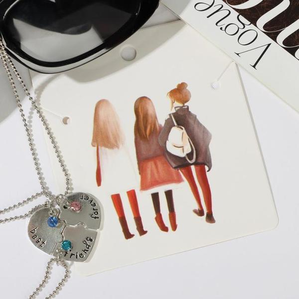 Кулон "Неразлучники" best friends, сердце, цвет розовый, цвет серебристый, 45 см (стразы, бижутерный сплав)
