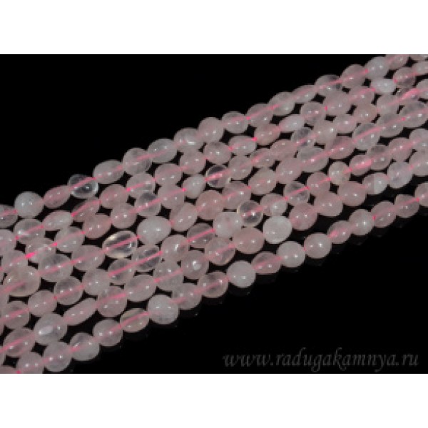Нитка РОЗОВЫЙ КВАРЦ, овалы 5-10мм