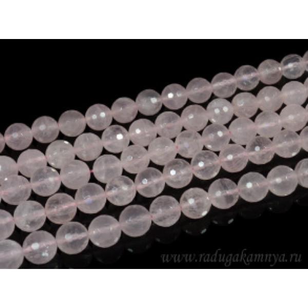 Бусины из розового кварца шарик огранка 12мм, 39см, 32 бусины