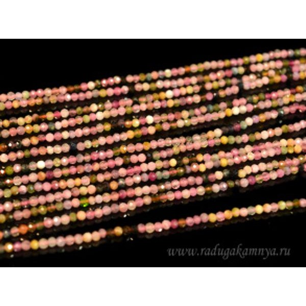 Нитка турмалин шарик 2мм (разные цвета), 39см, 195 бусин