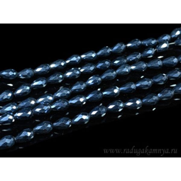 Бусины из циркона капля 10*15мм цвет сине-черный, 72см, 49 бусин