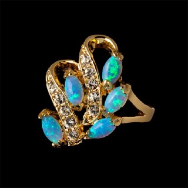 Кольцо с опалом австралийским "5 рис волна"