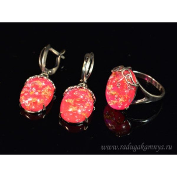 Кольцо и серьги с опалом искусственным, цвет ярко-розовый