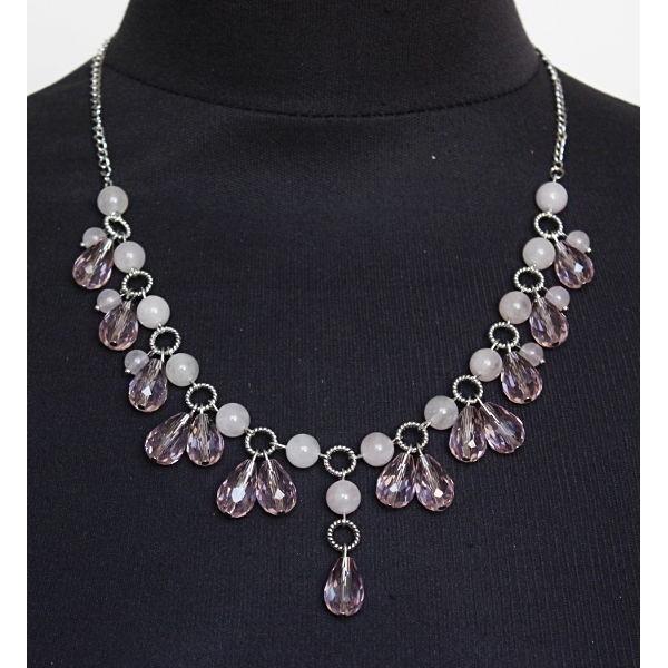 bu26-00152, bu26, bu26-, 26-, 26-00152, бусы_из_кварца, колье_с_хрустальными_каплями_на_колечках, кварц_розовый, бусы_кварц_розовый, шар_8