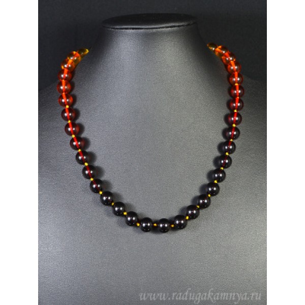 Бусы из янтаря шарик 10мм радуга лимонно-медово-вишневый, 48см