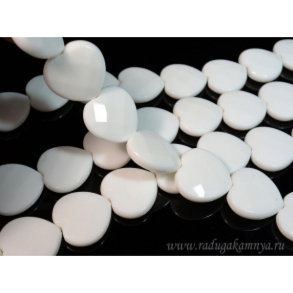 Бусины из агата белого (иск.) сердце гр. 29*30мм, 37см, 13 бусин