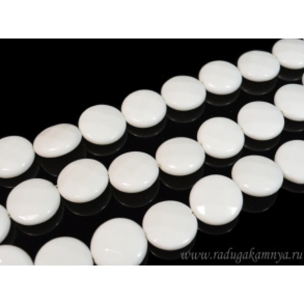 Бусины из агата белого (иск.) круг гр.20мм, 40см, 20 бусин